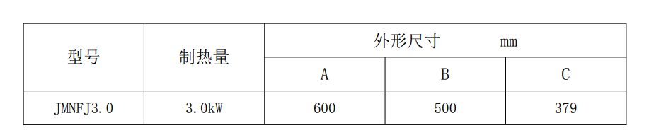 制热量 3kW;风量 600m³/h